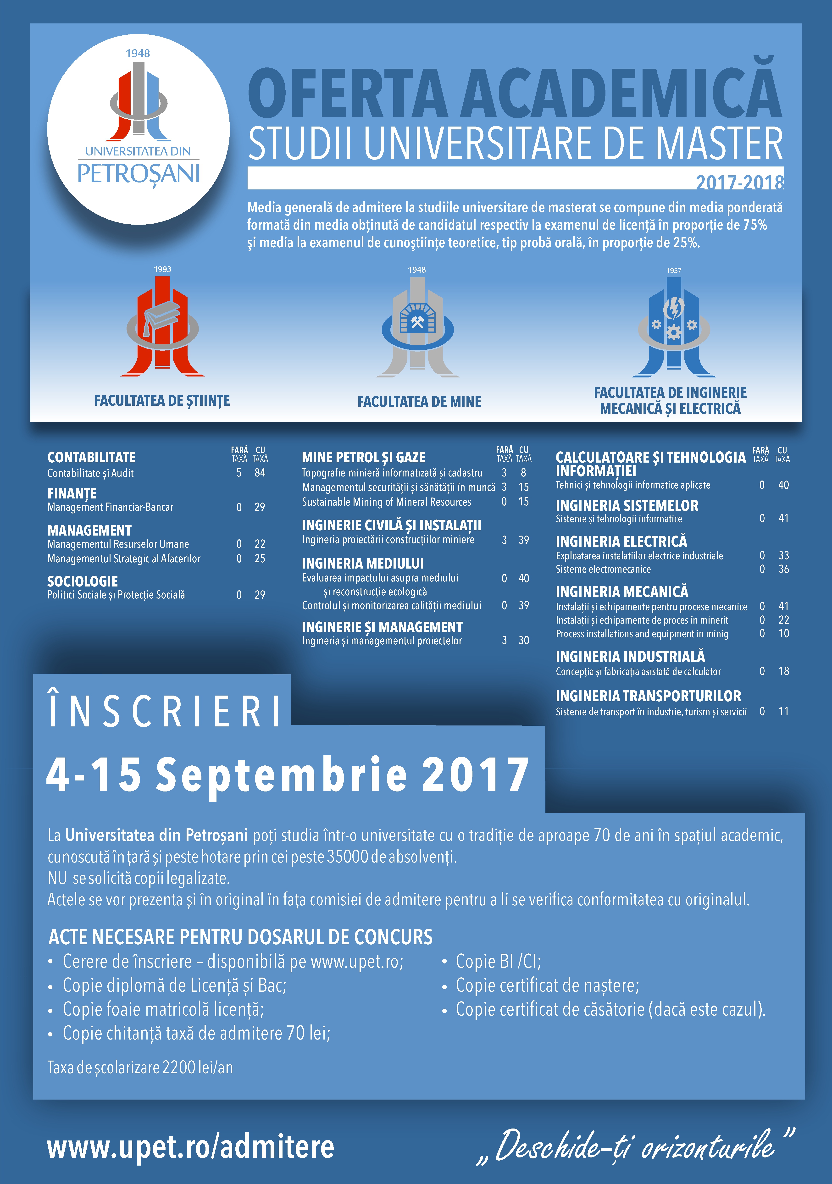 Admitere la Universitatea din Petroșani - 2017 |