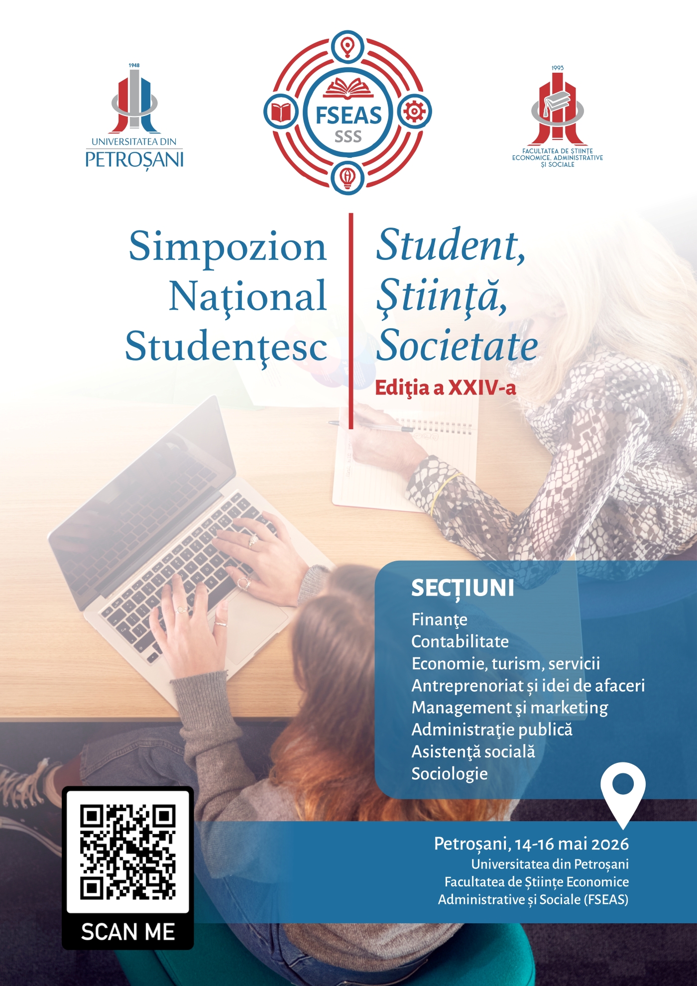 Simpozionul Național Studențesc „Student, Știință, Societate”, organizat de Universitatea din Petroșani, este un eveniment de tradiție dedicat prezentării și dezbaterii rezultatelor științifice obținute de studenți. Simpozionul oferă oportunitatea de a contribui cu lucrări, de a explora noi perspective și de a facilita colaborarea academică între participanți.